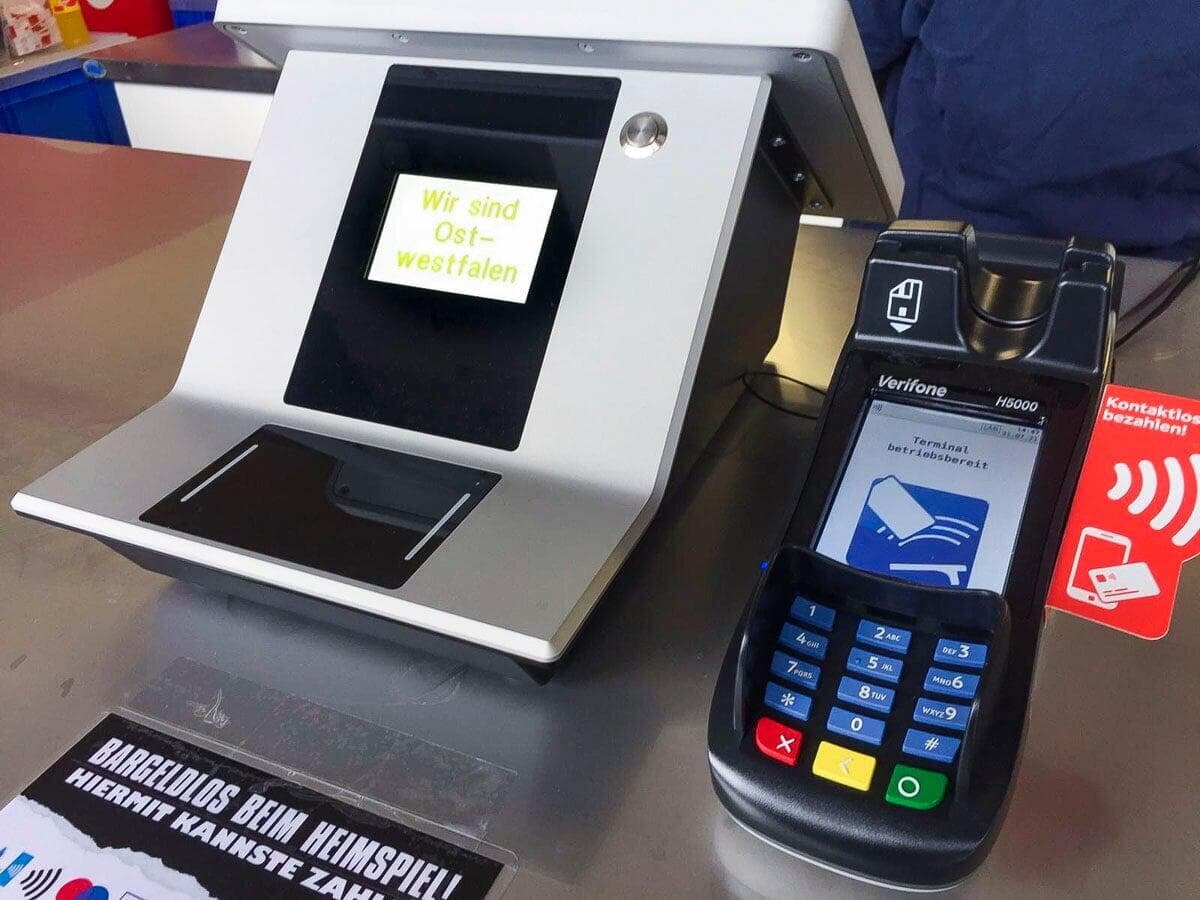 Die Stadien erwachen langsam wieder zum Leben und zeigen, dass sie die Zeit der Pandemie gut genutzt haben, um Neuerungen einzuführen. Der DSC Arminia Bielefeld ist das zweite Stadion der profipay-Installationsserie, das in diesem Sommer mit einem neuen Bezahlsystem ausgestattet wird. Komplett ohne Bargeld und kontaktlos. 115 Bezahleinheiten wurden installiert und alle Zahlungsarten mit dem Partner Mastercard angebunden. Die neue Kasse 3D mit integriertem 2D Barcode-Imager kommt dabei an 90 Verkaufspunkten zum Einsatz und 25 Smartphones werden vom mobilen Team genutzt.
